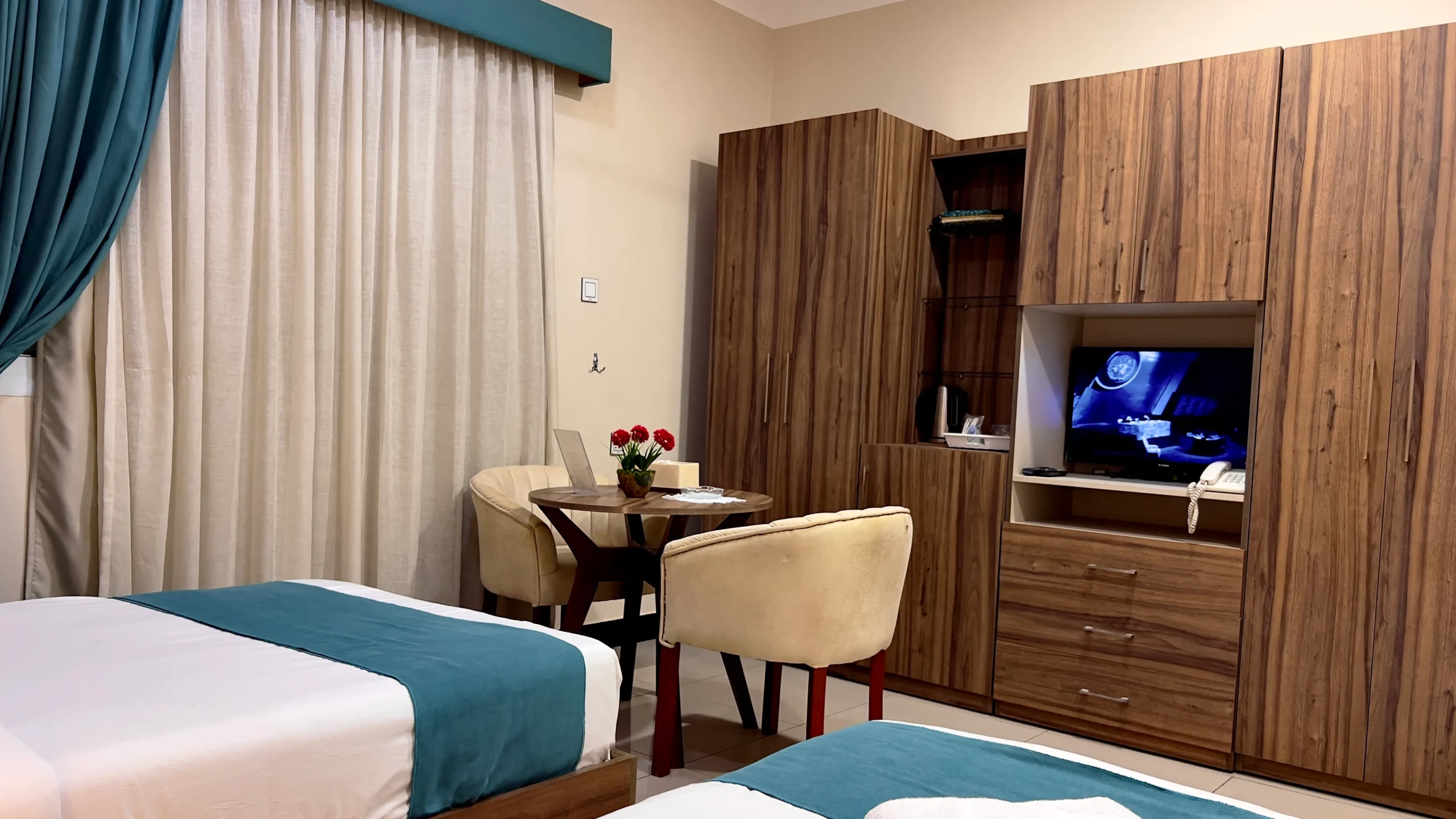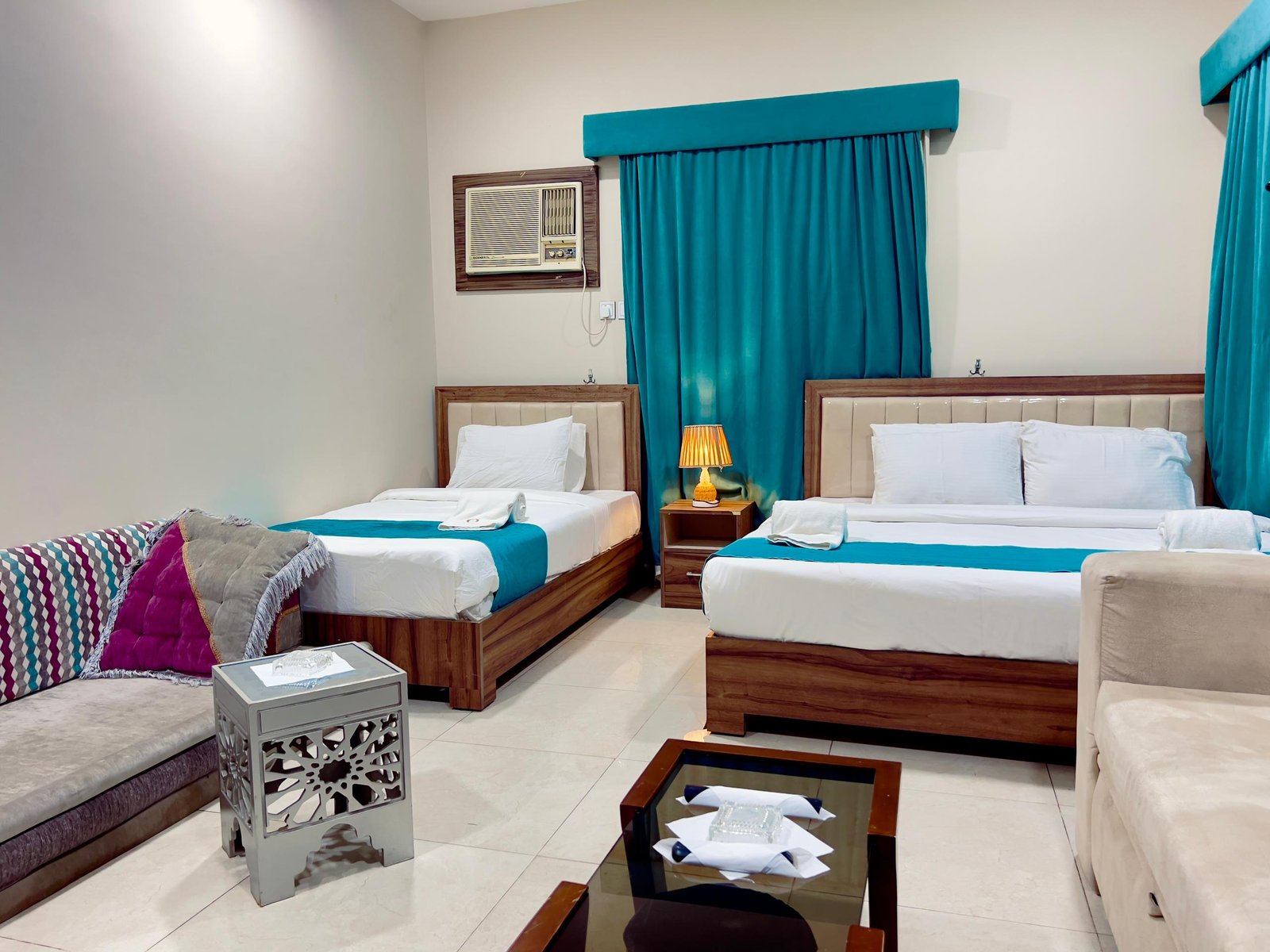 سرير عائلي واسع، طاولة طعام، غلاية كهربائية، حمام خاص، إنترنت